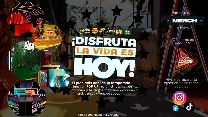 ¿Inspiración? El recorrido está inspirado en las marcas icónicas de la compañía, como Margarita, De Todito, Natuchips y Doritos, y busca ser una invitación a apreciar y disfrutar lo cotidiano.
